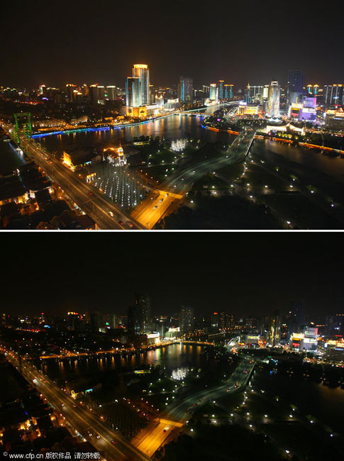 當日,世界自然基金會倡導的“地球一小時”活動得到全世界100多個國家和地區(qū)響應。中國的北京、上海、長沙、香港等許多城市也加入到這一活動中。圖片來源:中國新聞網(wǎng)