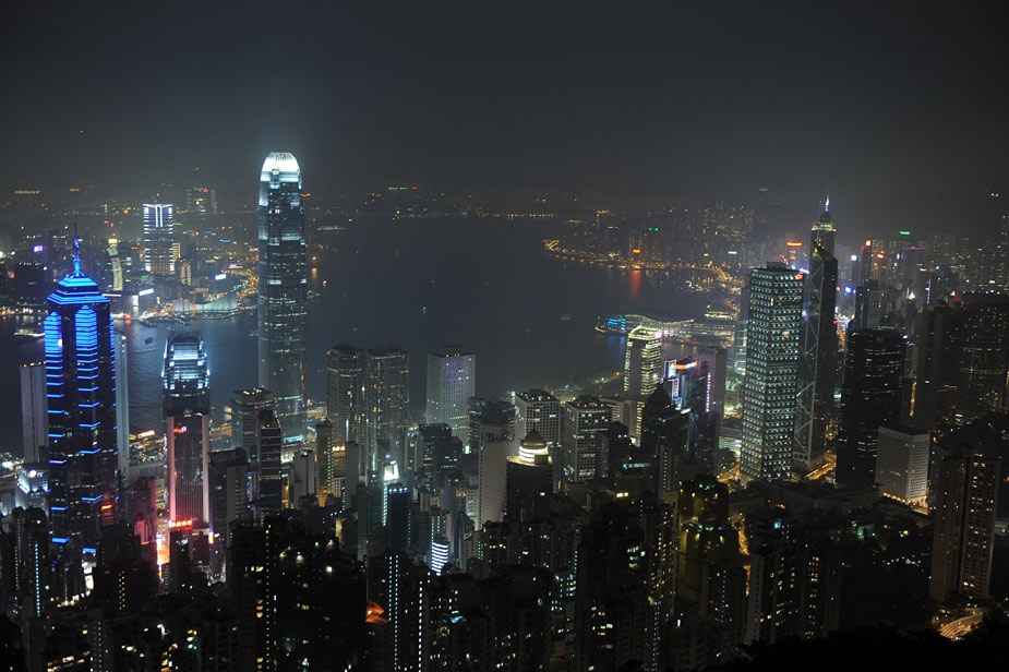 3月27日,香港市民響應世界自然基金舉會發起之地球一小時,連同全球各地10億人熄燈一小時。圖為熄燈前的景觀