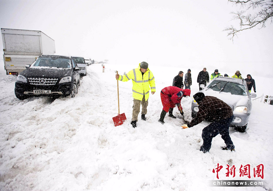 當地時間3月31日,英國北部部分地區遭暴風雪襲擊,導致數萬戶家庭斷電,有12名學生在惡劣天氣引發的交通事故中受傷。圖片來源:中國新聞網