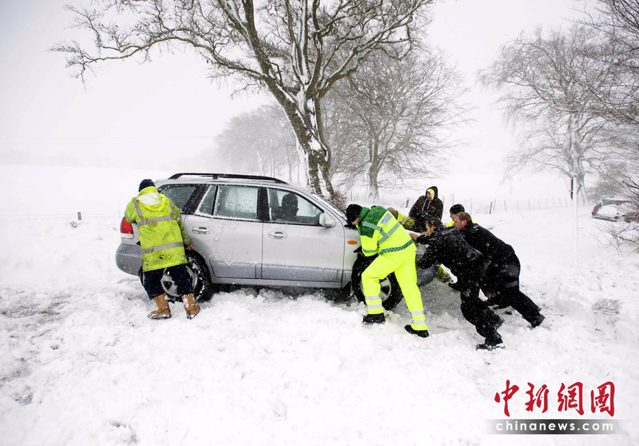當地時間3月31日,英國北部部分地區遭暴風雪襲擊,導致數萬戶家庭斷電,有12名學生在惡劣天氣引發的交通事故中受傷。圖片來源:中國新聞網
