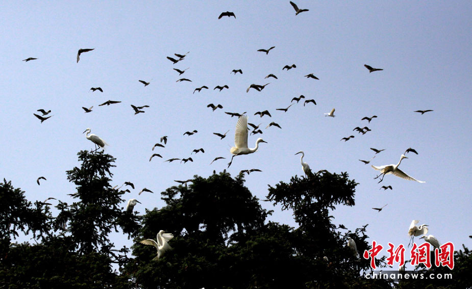 4月9日,一對白鷺在象山森林公園歡躍飛舞,譜寫一曲春日戀歌。四月,正值芳草萋萋,萬物生機勃勃。萬余只白鷺陸續(xù)抵達江西南昌象山森林公園棲息,繁衍后代,成為鄱陽湖濕地的一大獨特景觀, 吸引眾多攝影愛好者前來拍攝和觀賞。孫永勝 胡國林 攝