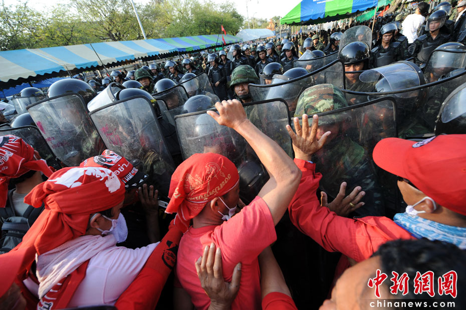4月10日,泰國(guó)軍隊(duì)在首都曼谷對(duì)支持前總理他信的“紅衫軍”進(jìn)行武力驅(qū)散,雙方爆發(fā)嚴(yán)重沖突,目前已造成18人死亡,數(shù)百人受傷。圖片來(lái)源:中國(guó)新聞網(wǎng)