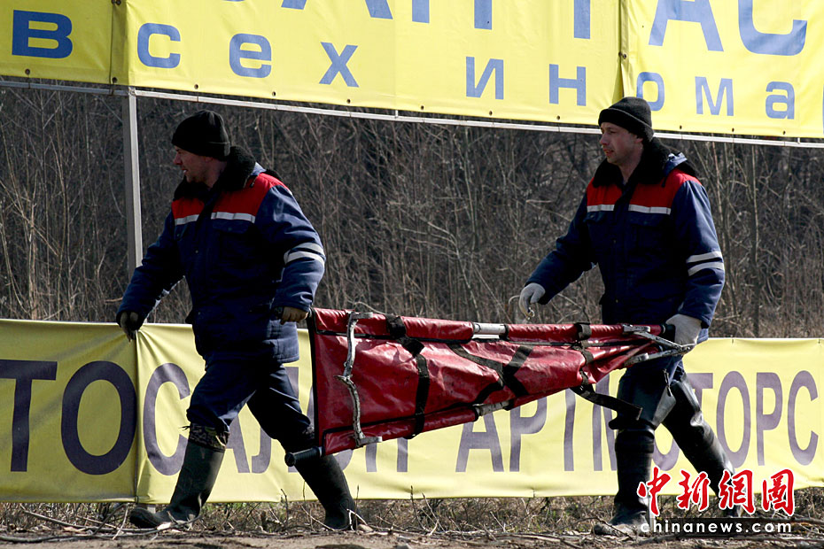 4月11日,波蘭總統卡欽斯基專機在俄羅斯斯摩棱斯克軍用機場墜毀地點附近的道路開通,但是警戒線核心區仍然關閉。俄波調查人員正在現場工作。圖片來源:中國新聞網