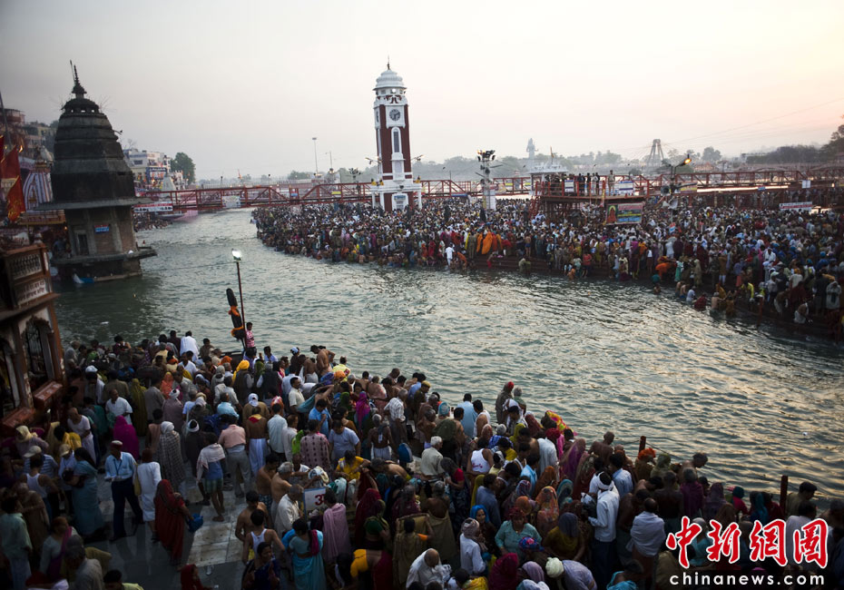 4月13日,印度教傳統節日“大壺節”步入尾聲,前來參加盛典的上萬苦行僧赤裸身體涌入恒河,祈求洗清身上的“罪惡”。圖片來源:中國新聞網
