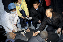 一架載有青海玉樹地震首批傷員及傷員家屬的中國空軍運輸機抵達成都雙流國際機場,其中35名地震傷員將被分別送往四川省人民醫院和四川大學華西醫院進行治療,運輸機于15日下午15時30分從玉樹當地機場起飛,經過1小時30分的飛行,歷程800公里,于4月15日下午17時03分,順利抵達成都。圖為醫院搶救人員正將受傷小孩從飛機抱往救護車。中新社發 張浪 攝