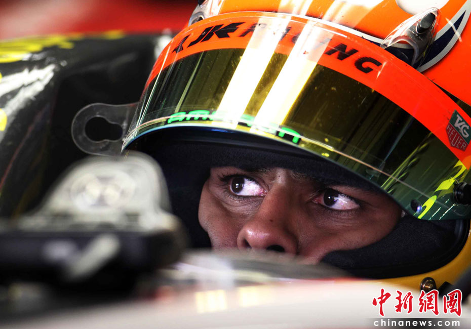 4月16日,2010國際汽聯F1世界錦標賽上海站在上海國際賽車場開始車手第一、第二次練習賽。圖為代表印度車隊出戰的印度車手查鐸。中新社記者 任晨鳴 攝