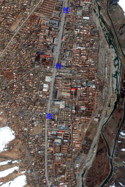 利用對(duì)地觀測(cè)中心2010年4月16日獲取的高分辨率航空遙感數(shù)據(jù),提取出玉樹州結(jié)古鎮(zhèn)城區(qū)范圍內(nèi)地震破壞最嚴(yán)重或典型地區(qū),使之與GoogleEarth中相應(yīng)位置的震前遙感衛(wèi)星數(shù)據(jù)進(jìn)行對(duì)比,直觀展現(xiàn)結(jié)古鎮(zhèn)在此次地震中的受影響程度。圖片來(lái)源:中國(guó)科學(xué)院