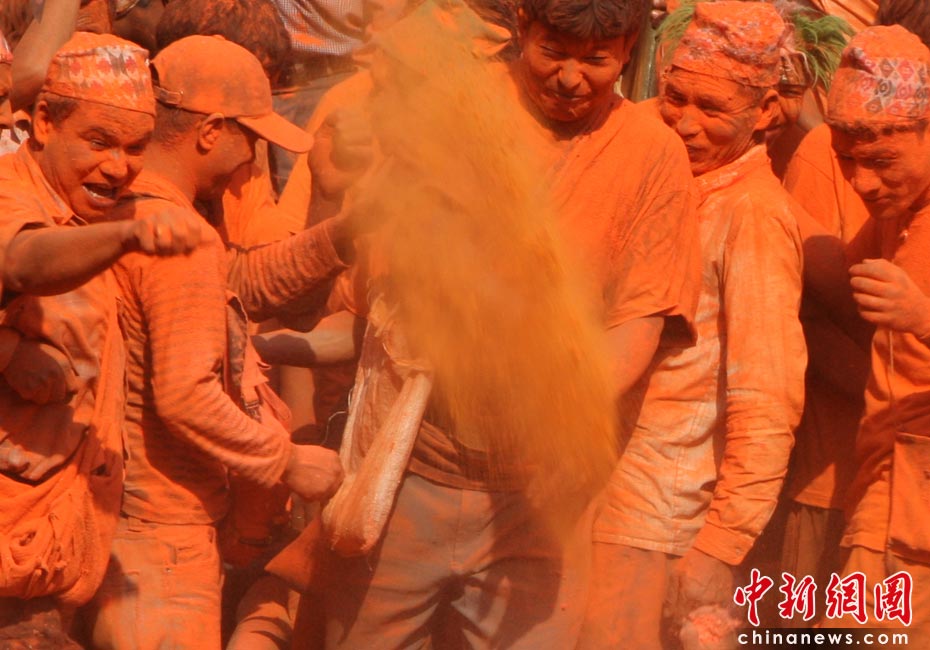 4月15日,尼泊爾迎來一年一度的傳統節日“尼歷新年”。當日全國放假一天,在加德滿都郊區人們涌上街頭潑灑紅粉慶祝新年。圖片來源:中國新聞網