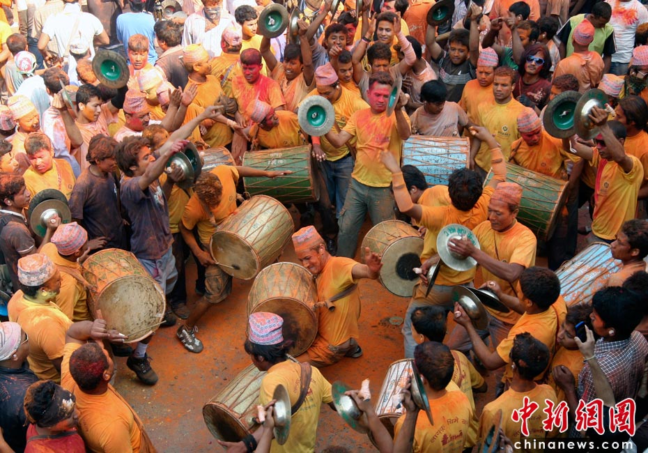 4月15日,尼泊爾迎來(lái)一年一度的傳統(tǒng)節(jié)日“尼歷新年”。當(dāng)日全國(guó)放假一天,在加德滿都郊區(qū)人們涌上街頭潑灑紅粉慶祝新年。圖片來(lái)源:中國(guó)新聞網(wǎng)