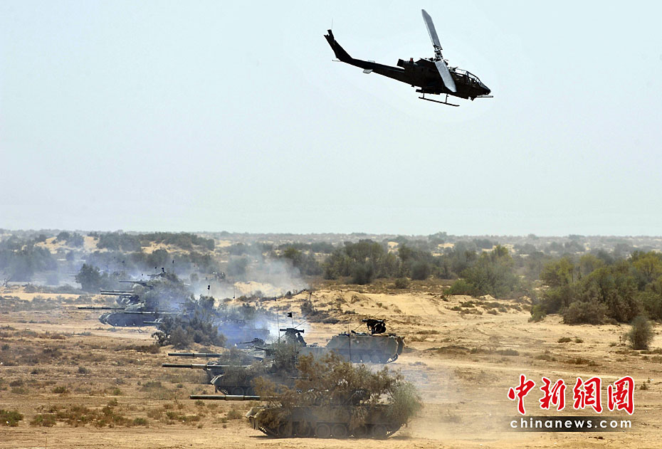巴基斯坦軍隊(duì)4月18日出動(dòng)戰(zhàn)機(jī)、坦克和重型火炮,在靠近印度邊界的東部沙漠地區(qū)舉行“新決心—3”軍事演習(xí)。圖片來源:中國新聞網(wǎng)
