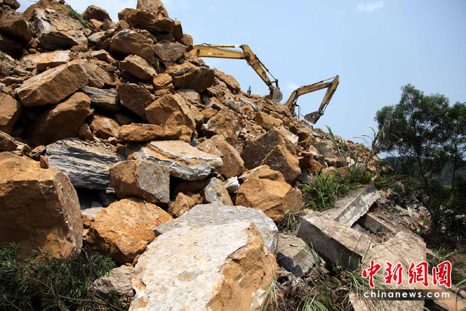 4月26日,臺灣“北二高”基隆段山崩斷橋意外第2天,大批工程人員使用近50臺怪手持續開挖,但尚未尋獲被埋的車輛和失蹤者。這起“走山”斷橋意外發生在25日,一座高百米的山坡全然崩坍,土石覆蓋道路長約200米、面積達3個足球場之大,令南下北上的交通大受影響。 董會峰 攝