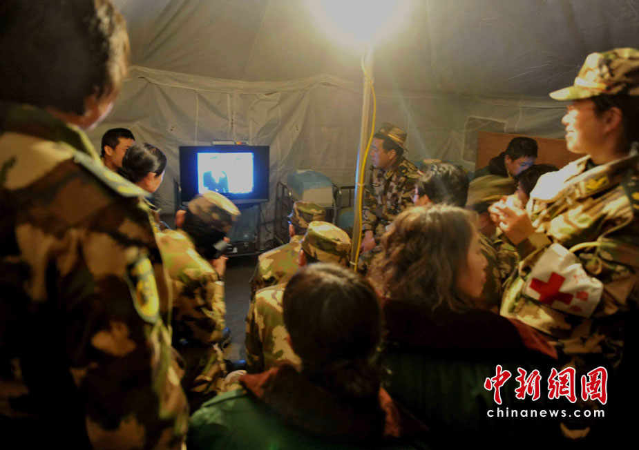 武警青海總隊玉樹支隊是最先投入抗震救災(zāi)的先鋒部隊,地震發(fā)生時恰逢部隊出操,營房嚴重受損而官兵平安無恙。這里立即成為抗震救災(zāi)的軍民和媒體的大本營之一,醫(yī)療救護隊和新型炊事車晝夜為軍民服務(wù)。集結(jié)在地震災(zāi)區(qū)的各路部隊從4月低之前全面轉(zhuǎn)入安置群眾和災(zāi)后重建,這里的的后勤已經(jīng)得到基本保障。 中新社記者 賈國榮 攝