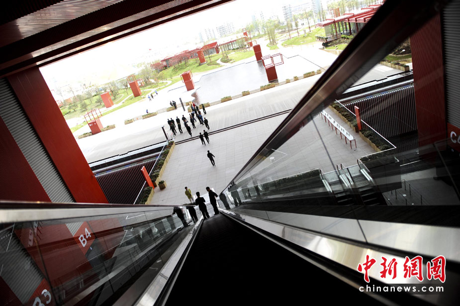 4月27日,從上海世博園中國(guó)館滾梯上俯瞰園區(qū)。中新社發(fā) 廖攀 攝