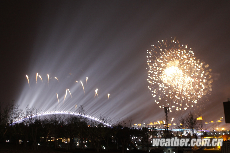 2010年4月27日,上海世博會(huì)開(kāi)幕式彩排順利進(jìn)行。圖為燈光與煙花互相映襯,十分絢麗。卞赟 攝