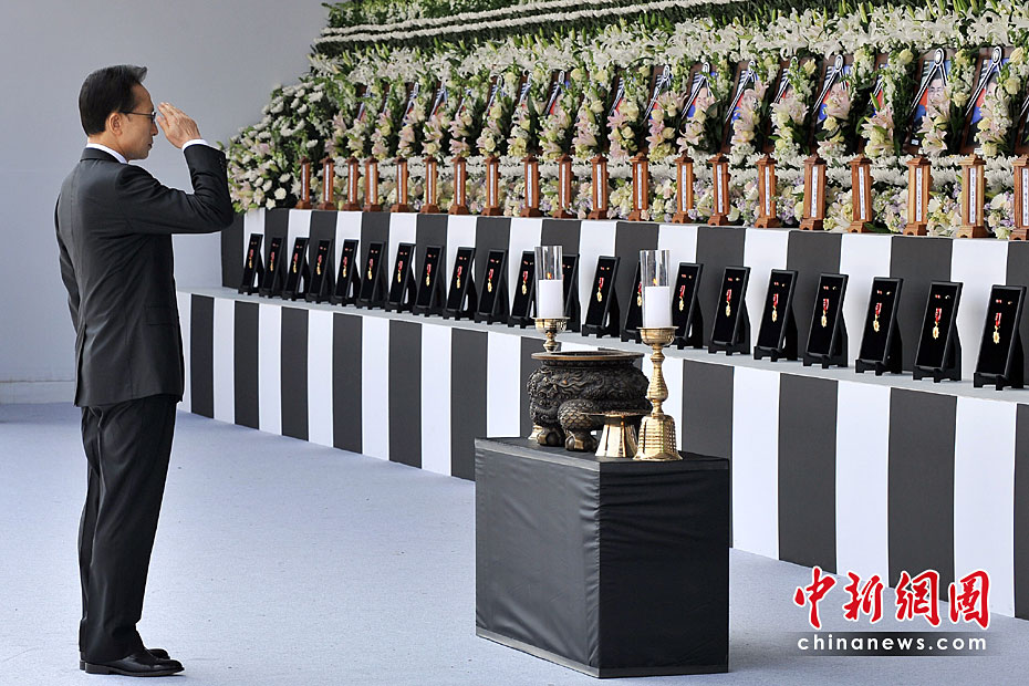 4月29日上午,韓國“天安”艦遇難官兵遺體告別儀式在平澤海軍第二艦隊司令部安保公園舉行。韓國總統李明博攜夫人參加告別儀式。圖片來源:中國新聞網