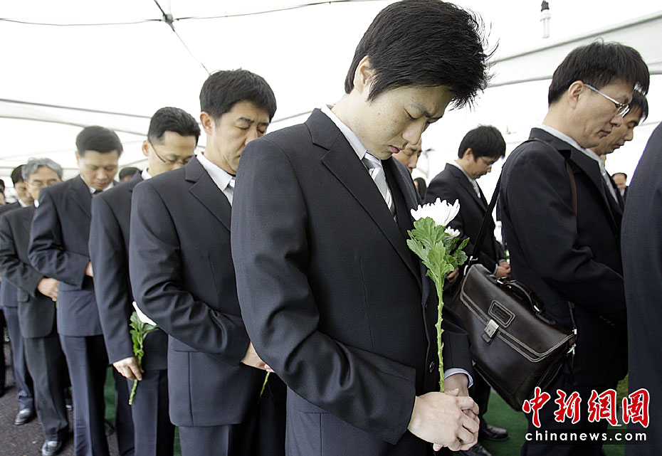 4月29日上午,韓國“天安”艦遇難官兵遺體告別儀式在平澤海軍第二艦隊司令部安保公園舉行。韓國總統李明博攜夫人參加告別儀式。圖片來源:中國新聞網