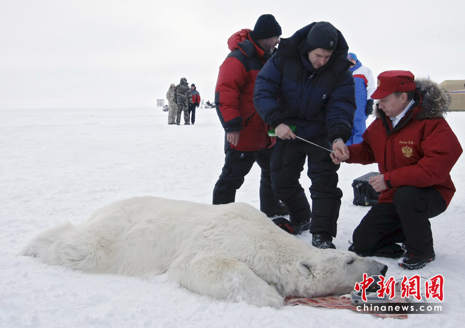 4月29日,俄羅斯總理普京參觀亞歷山大地島(法蘭士約瑟夫地群島)。 普京還與在研究學者一同給通過專門的陷阱捕獲的北極熊戴上衛星定位項圈。此外,學者們還與普京一起給北極熊進行測量和秤體重,