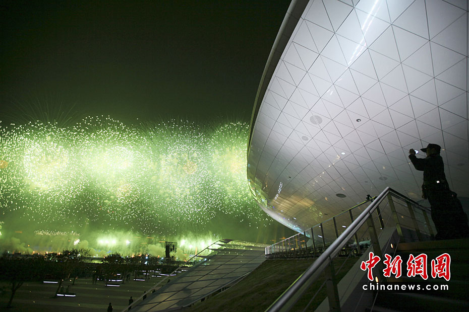 4月30日晚21時(shí)28分,在世博會(huì)焰火燈光表演開(kāi)始。萬(wàn)千煙花爭(zhēng)奇斗妍,黃浦江兩岸綿延3.28公里同時(shí)奏響火樹(shù)銀花不夜天的華彩世博樂(lè)章。圖片來(lái)源:中國(guó)新聞網(wǎng)