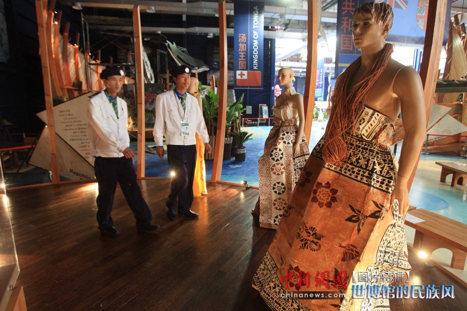 5月1日,上海世博會開園第一天,斐濟國的手繪樹皮時裝在太平洋聯合館展出。中新社發 潘索菲 攝