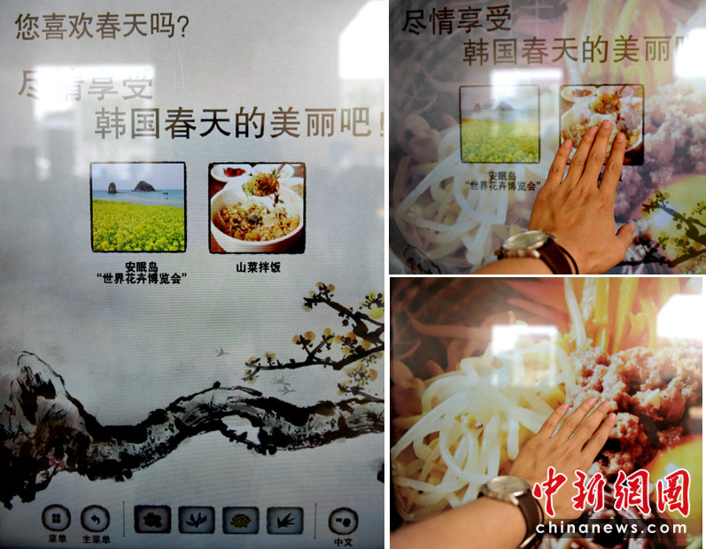 互動觸摸屏,可以瀏覽韓國美麗風光和美食文化。中新網記者 王紅綱 攝