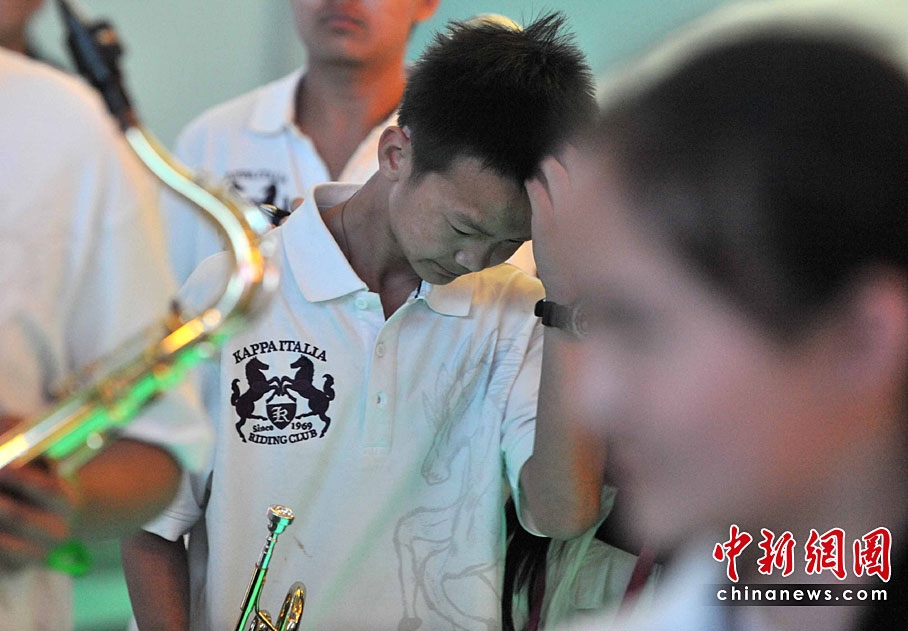 5月2日清晨,來(lái)自玉樹地震災(zāi)區(qū)結(jié)古鎮(zhèn)的藏族小樂(lè)手巴東珠,含著姐姐在地震中不幸遇難的悲痛心情,與小白楊中學(xué)生管弦樂(lè)團(tuán)來(lái)到上海世博會(huì),為中國(guó)青海館觀眾獻(xiàn)上一曲《在那遙遠(yuǎn)的地方》。他悲歡交融的情懷和演藝,感動(dòng)全場(chǎng)。巴東珠之前還是青海省人民醫(yī)院為地震傷員做藏語(yǔ)翻譯的志愿者。中新社記者 賈國(guó)榮 攝