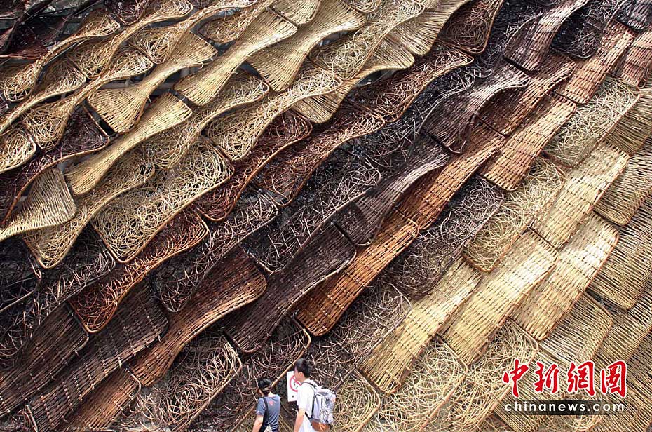 5月2日,上海世博會是第一個正式提出“低碳世博”理念的世博會,圍繞著這樣的理念,上海世博園區內的低碳元素比比皆是。圖為西班牙館外墻是用藤條材料組成,既環保又傳統。中新社發 湯彥俊 攝