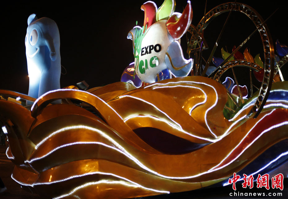 世博盛裝夜巡游 花車美女盡顯異域風情