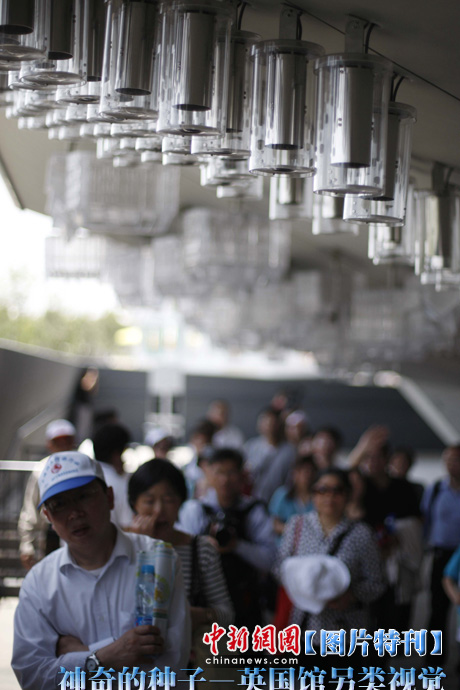 上海世博園開園才數日,自號“種子圣殿”的英國館已成人氣最旺場館之一。該館由6萬根亞克力桿巧妙構成,隨風搖動,頗為新奇。其每根桿子里都含有植物種子。中新社記者 盛佳鵬 攝