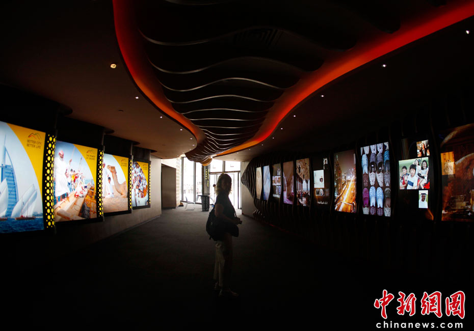 2010年5月4日,上海世博園區(qū),一位游客在主題為“夢(mèng)想的力量”的阿聯(lián)酋館內(nèi)參觀,體驗(yàn)夢(mèng)想之旅。中新社發(fā) 盛佳鵬 攝