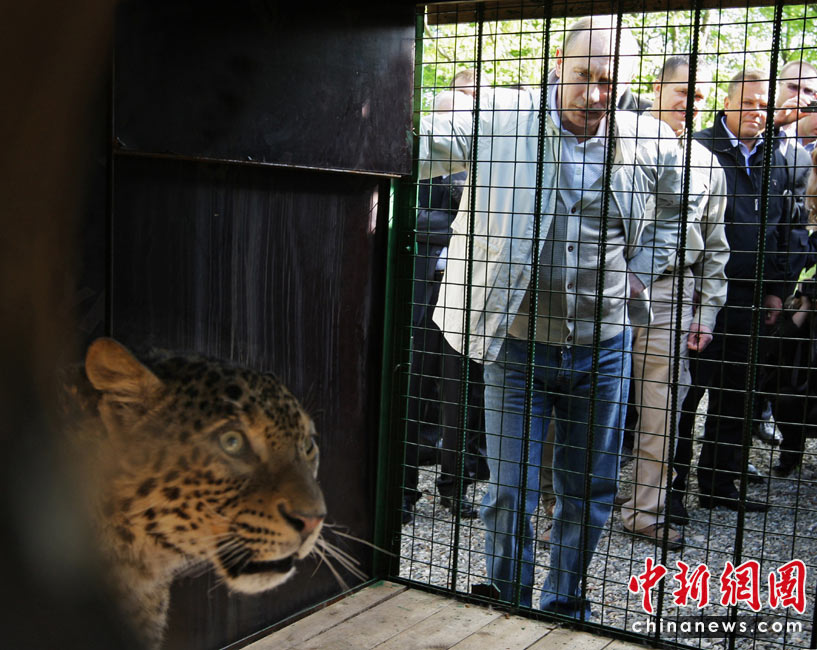 近日,俄羅斯總理普京來到2014年冬奧會舉辦地索契一家動物園,觀看一頭用東北虎換來的波斯豹。普京饒有興致地觀察了一會兒后,對這頭剛剛到來、還有些認生的豹說:“別害怕,跑起來”,還向它做了個飛吻。此次從伊朗引進波斯母豹,是希望與本地的土庫曼尼斯坦公豹交配,以挽救這一瀕臨滅絕的物種。