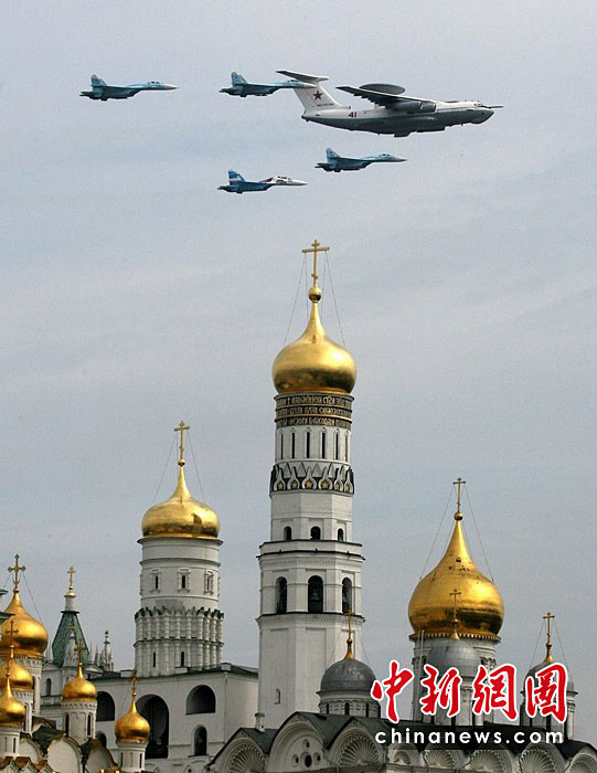 當地時間5月4日,在俄羅斯首都莫斯科,參加彩排的戰機編隊飛過紅場上空。俄羅斯將于5月9日隆重紀念衛國戰爭勝利65周年。圖片來源:中國新聞網