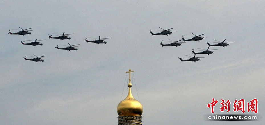 當(dāng)?shù)貢r(shí)間5月4日,在俄羅斯首都莫斯科,參加彩排的戰(zhàn)機(jī)編隊(duì)飛過紅場上空。俄羅斯將于5月9日隆重紀(jì)念衛(wèi)國戰(zhàn)爭勝利65周年。圖片來源:中國新聞網(wǎng)