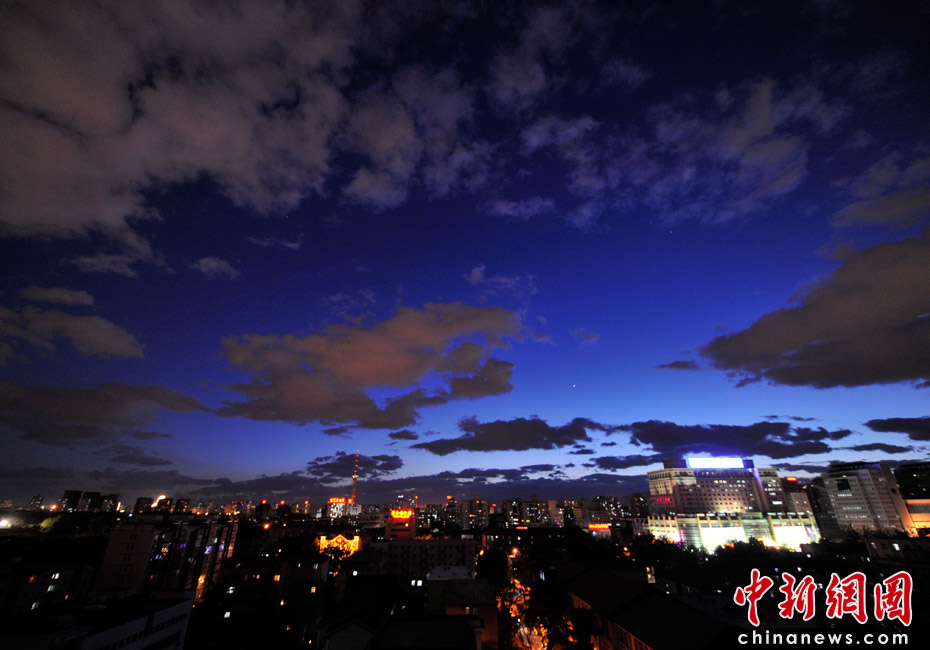 5月5日立夏,京城降雨今晨剛剛結束,霧氣伺機又起。傍晚時分,隨著四級北風的到來,京城天氣逐漸轉晴,霧氣慢慢消散天空彤云密布夜色瑰麗。中新網記者 金碩 攝