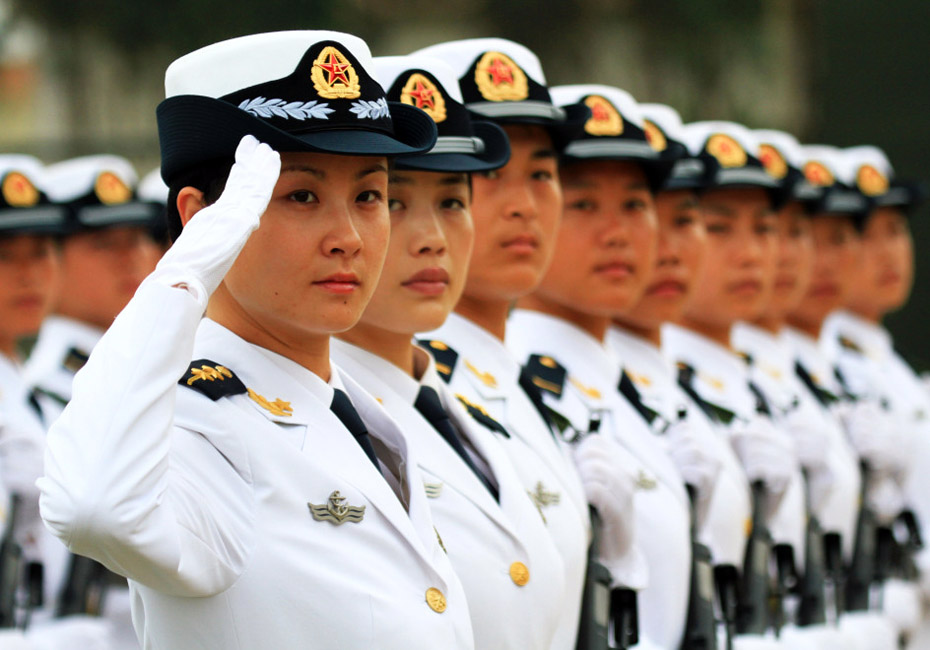 5月5日,海軍陸戰(zhàn)隊女隊員接受檢閱。圖片來源:新華網(wǎng) 查春明攝