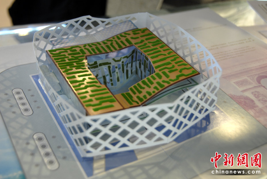 世博園區內的特許商品店里,折紙場館惟妙惟肖,頗受游客的喜愛。圖為法國館紙模型。中新網記者 吳歆 攝