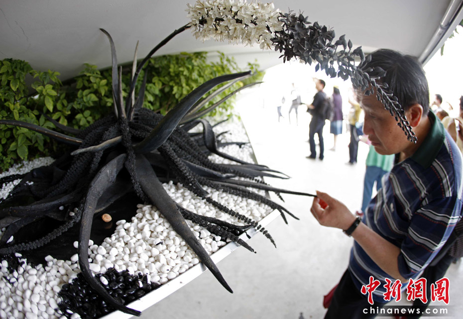 圖為英國館內(nèi)神奇的植物。 中新社記者 廖攀 攝