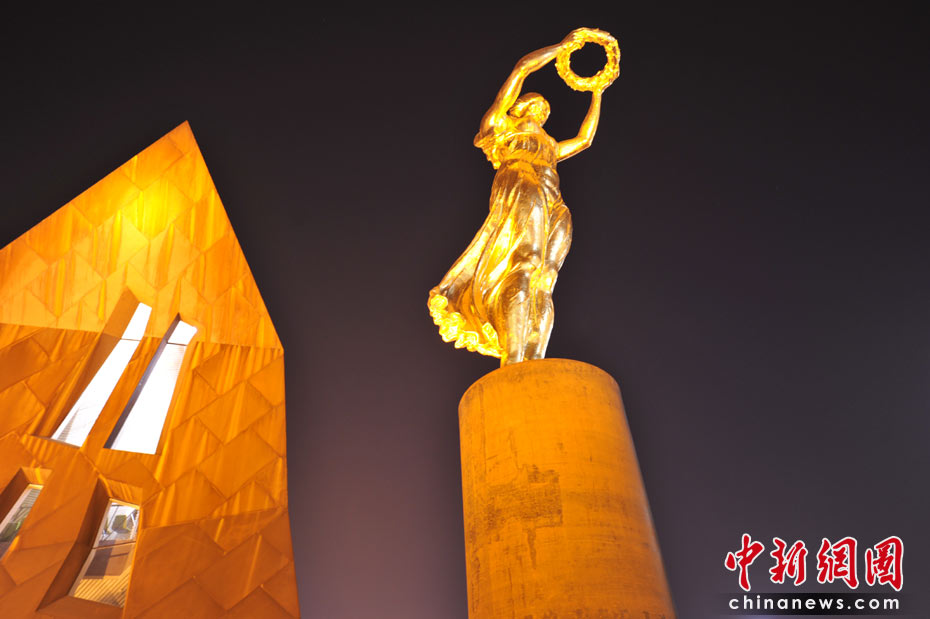 圖為盧森堡館外的金色少女。 中新網(wǎng)記者 王紅綱 攝