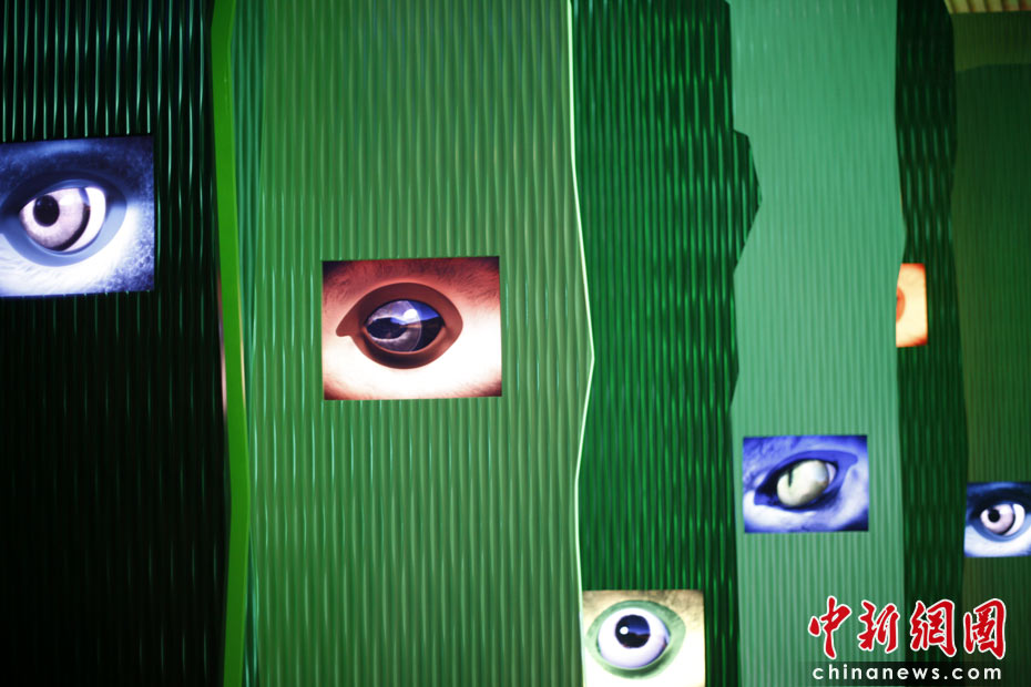 圖為盧森堡館內的眼睛墻。 中新社記者 盛佳鵬 攝
