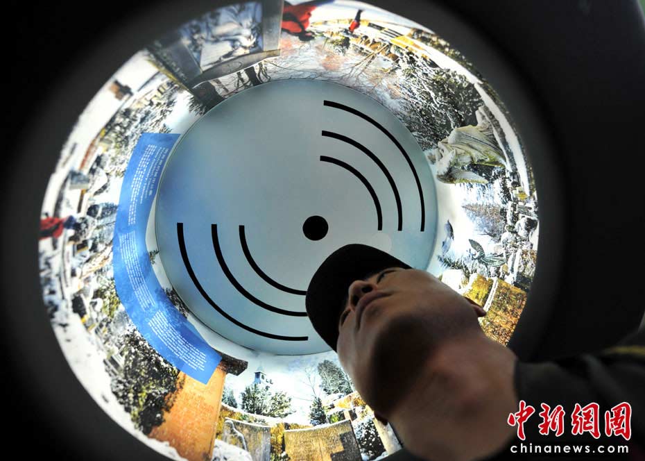 圖為德國館內的360度環繞視聽展示。 中新網記者 王紅綱 攝