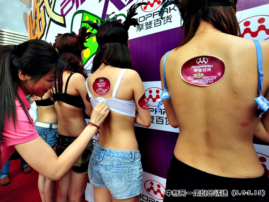 5月8日,在廣州天河某個(gè)百貨商場(chǎng)門口上演了一場(chǎng)另類的“解內(nèi)衣”比賽。圖片來源:中國新聞網(wǎng)>>點(diǎn)擊觀看詳細(xì)內(nèi)容