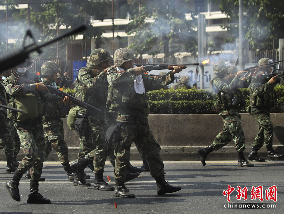 泰國政府軍和反政府示威者5月14日深夜在曼谷爆發(fā)嚴重暴力沖突。曼谷緊急醫(yī)療機構(gòu)15日稱,截止當?shù)貢r間早晨6時,沖突已導致16人死亡,至少141受傷,傷者中包括3名外國人。圖片來源:中國新聞網(wǎng)