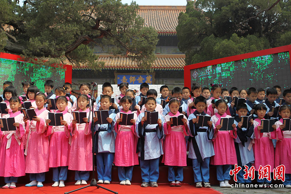 5月15日,首屆“兩岸漢字藝術節”新聞發布會在北京孔廟舉行。原文化部長、著名作家王蒙與臺灣文化總會會長劉兆玄等共同書寫漢字——“漢字藝術源遠流長”。 中新社發 蘇丹 攝