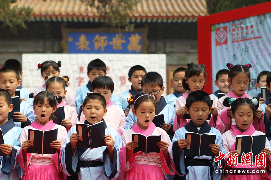 5月15日,首屆“兩岸漢字藝術節”新聞發布會在北京孔廟舉行。原文化部長、著名作家王蒙與臺灣文化總會會長劉兆玄等共同書寫漢字——“漢字藝術源遠流長”。 中新社發 蘇丹 攝