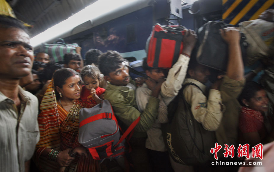 16日,印度新德里的一個火車站發生踩踏事故,造成2死9傷。一班列車提早進站且?吭诹硪坏貐^,擴音器一宣布消息,立刻有數百人蜂涌至列車?康脑屡_,一名婦人與一名小孩因此被踩死。 圖片來源:中國新聞網