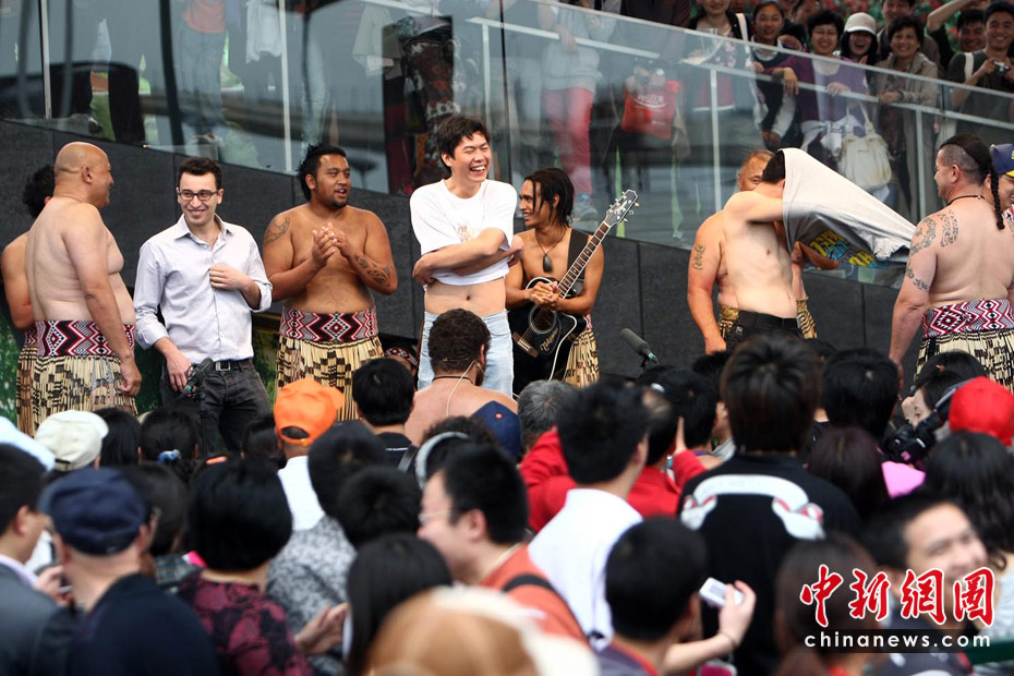 世博趣圖:游客赤膊上陣學跳毛利舞