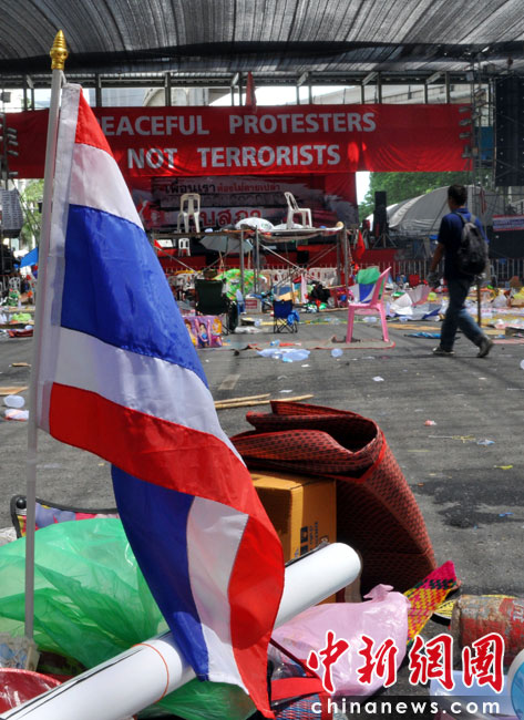 泰國紅衫軍領導人乍都蓬19日下午1時決定,向曼谷警方投降。同時向警方投降的還包括納塔兀、素蓬、翁醫師等紅衫軍核心領導人。紅衫軍領導人納塔兀責其支持者宣布,結束紅衫軍已持續了兩個多月的集會示威行動。圖片來源:中國新聞網