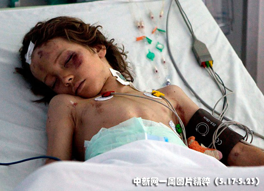 利比亞空難的唯一幸存者、九歲的荷蘭男孩魯本•凡•阿蘇5月14日在利比亞的黎波里的一家醫(yī)院里熟睡。5月12日,泛非航空公司一架搭載104名乘客的飛機(jī)失事,魯本•凡•阿蘇是發(fā)現(xiàn)的唯一幸存者,他的父親,母親和11歲的哥哥不幸去世。至今還沒人告訴他這一消息,但他的兩位親屬火速?gòu)暮商m趕來看他。