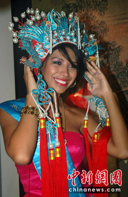 5月24日,海南三亞,正在此間參加第35屆國際比基尼小姐全球總決賽的64位佳麗,參觀了三亞一家珍珠博物館。佳麗們對漂亮的珍珠十分鐘愛,在攝影師前擺出各種“POSE”,留下美麗身影。 中新社記者 尹海明攝