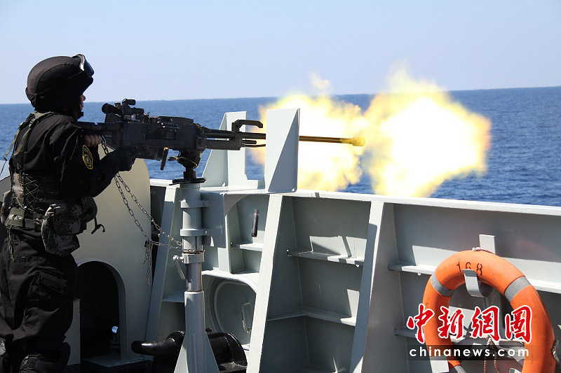 3月5日,特戰(zhàn)隊(duì)員在海上練習(xí)射擊。胡軍 攝