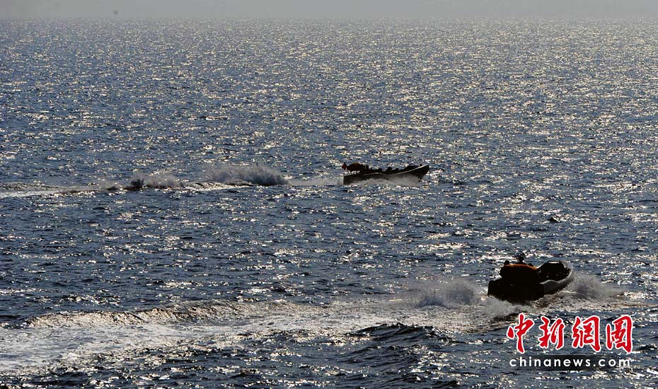 2艘小艇協同前出,高速抵近可疑目標。江山 攝